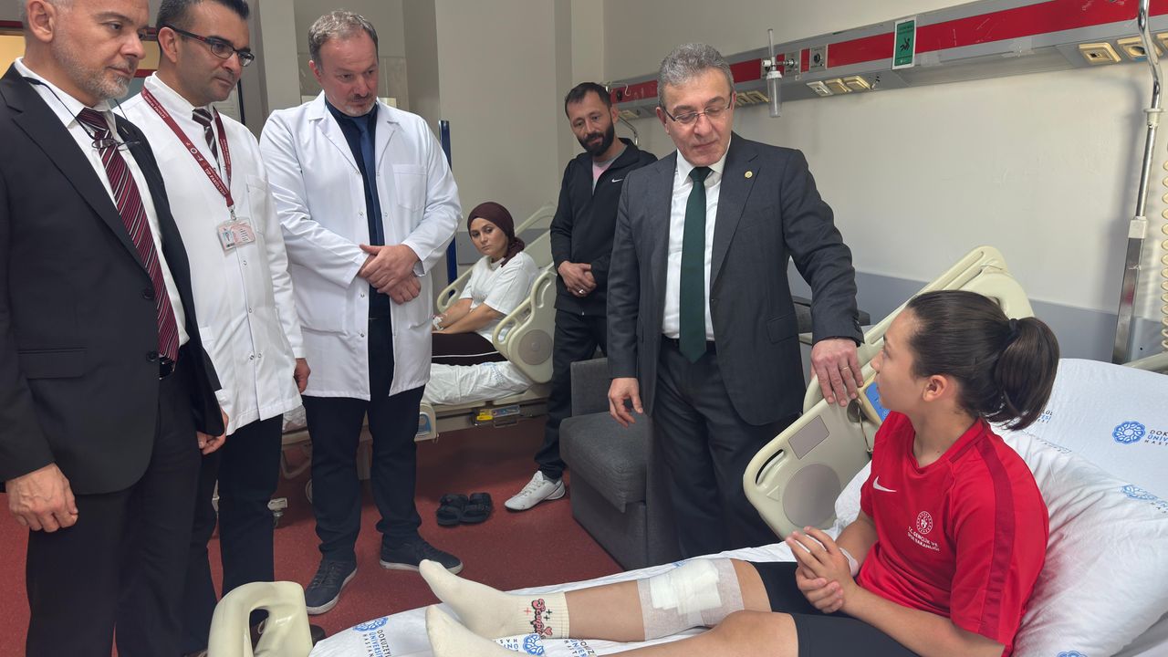 Anne ve kızını ziyaret eden DEÜ Rektörü Prof. Dr. Bayram Yılmaz da Kehribar'ın önemli diz ameliyatlarında milli sporcular başta olmak üzere sakatlık geçiren birçok gencin yeniden spor yaşantılarına dönmesini sağladığını söyledi.
