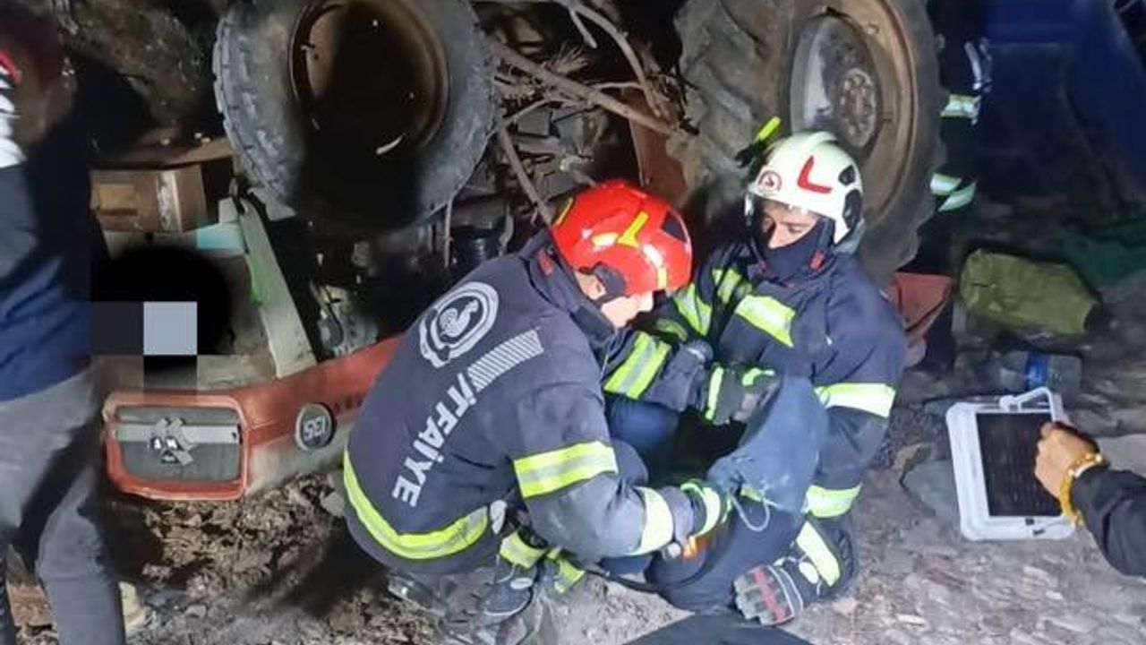 Güzelpınar Mahallesi'nde Hasan Çelik'in (62) kullandığı 20 DL 669 plakalı traktör, henüz belirlenemeyen nedenle şarampole devrildi.