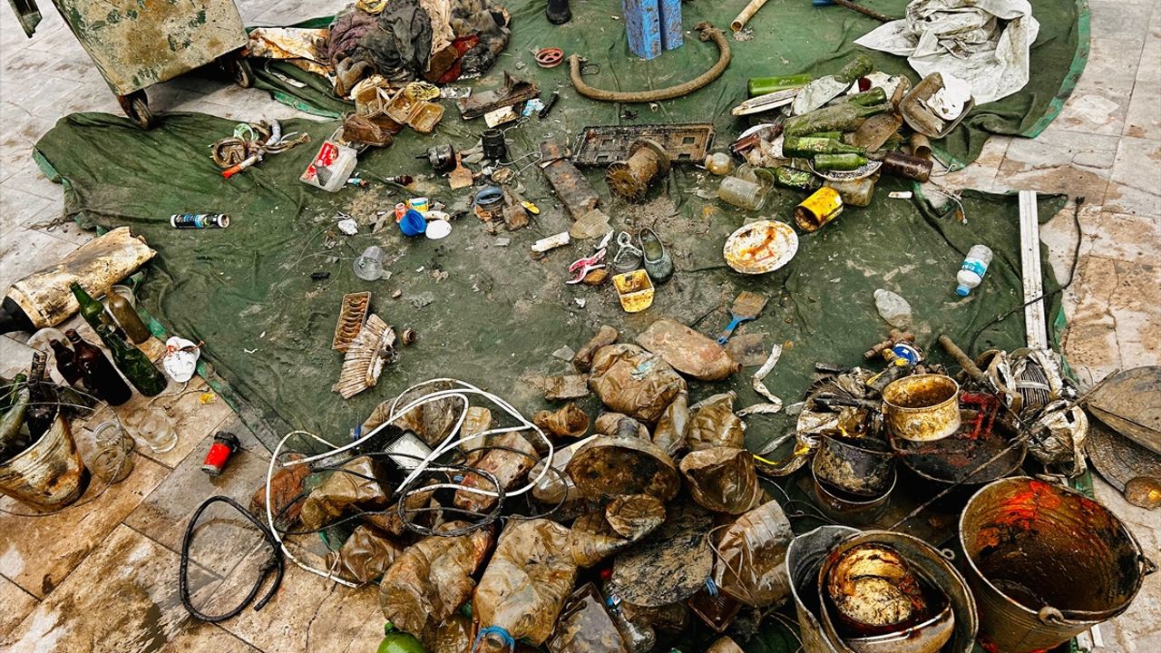 Gönüllü dalgıçların yer aldığı temizlikte, denizden çöp konteyneri ile bir miktar atık çıkarıldı.