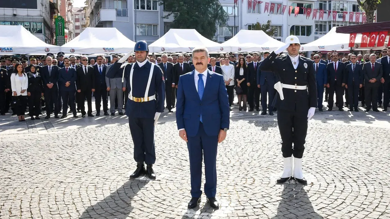 Çelenk sunma töreninin ardından Dr. Turan Ergün makamında Zafer Bayramı tebriklerini kabul etti.