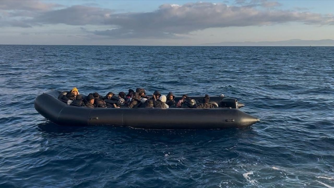 Ekiplerce durdurulan lastik bottaki 19'u çocuk 42 düzensiz göçmen yakalandı.