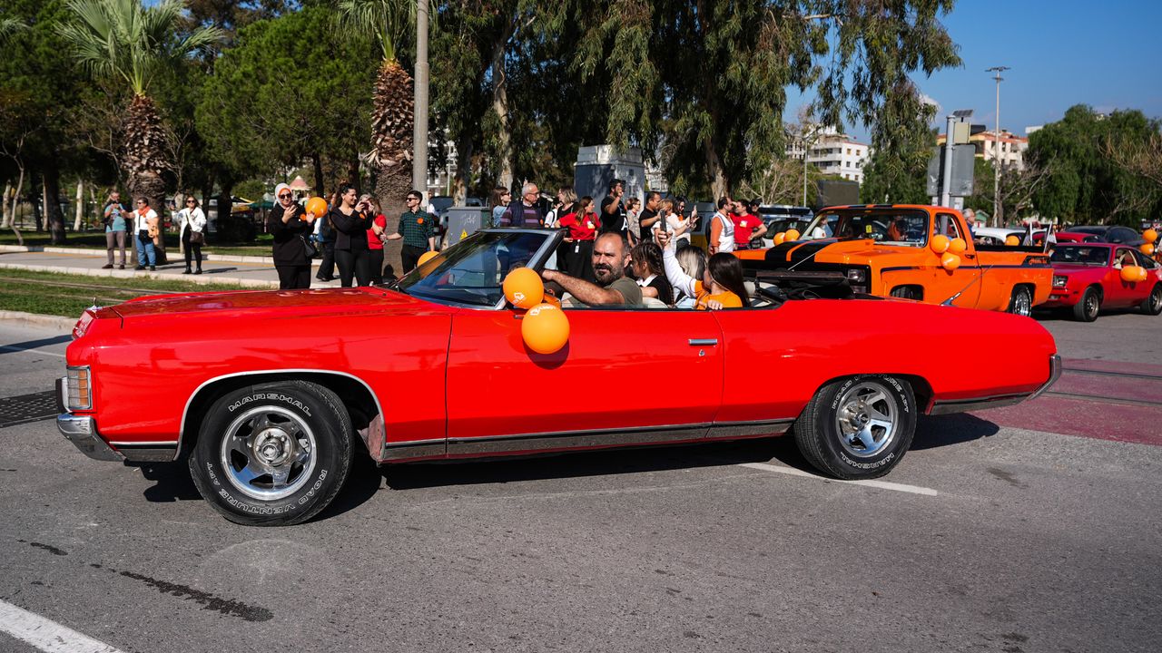Korteje turuncu balonlarla süslenen klasik otomobiller, araçlar ve motosiklet grupları da destek verdi.