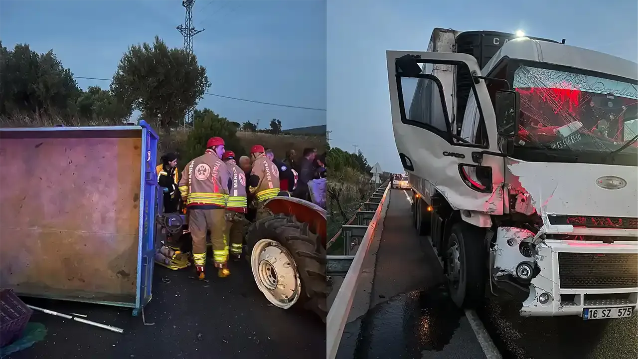 Ö.E. (47) yönetimindeki 16 SZ 575 plakalı kamyon, Akhisar-Balıkesir kara yolunun Gökçeahmet Mahallesi mevkisinde aynı yönde ilerleyen E.G'nin (41) kullandığı 45 NF 985 plakalı traktöre çarptı.