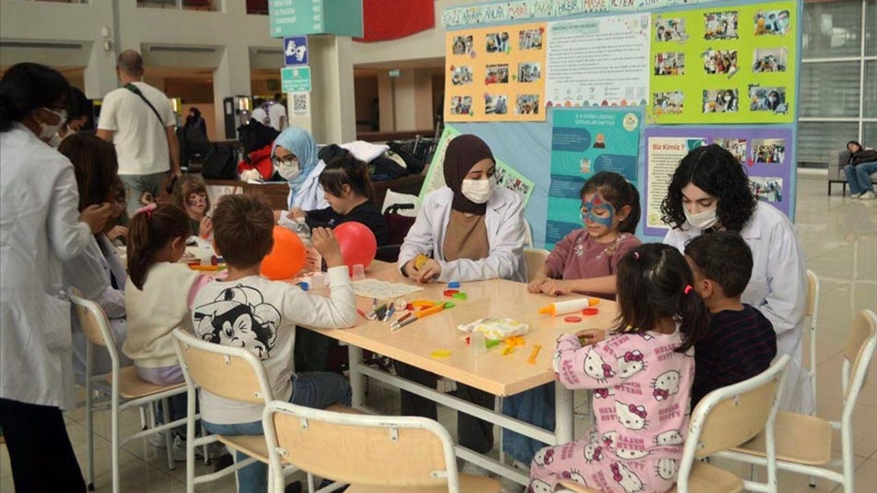 Eğitim Araştırma Hastanesi'nde stant açan topluluk üyeleri, çocuklarla resim boyama etkinliği gerçekleştirdi ve ailelere lösemi hakkında bilgilendirmelerde bulunuldu.
