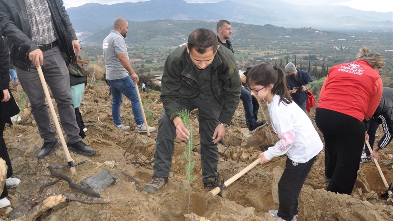 Karadoğan Mahallesi'nde gerçekleştirilen fidan dikimi programına, öğrenciler, protokol üyeleri ve STK temsilcileri katıldı. Fidanların dikildiği alanda Ödemiş'teki orman yangınında şehit olan Ragıp Şahin için hatıra ormanı oluşturuldu.