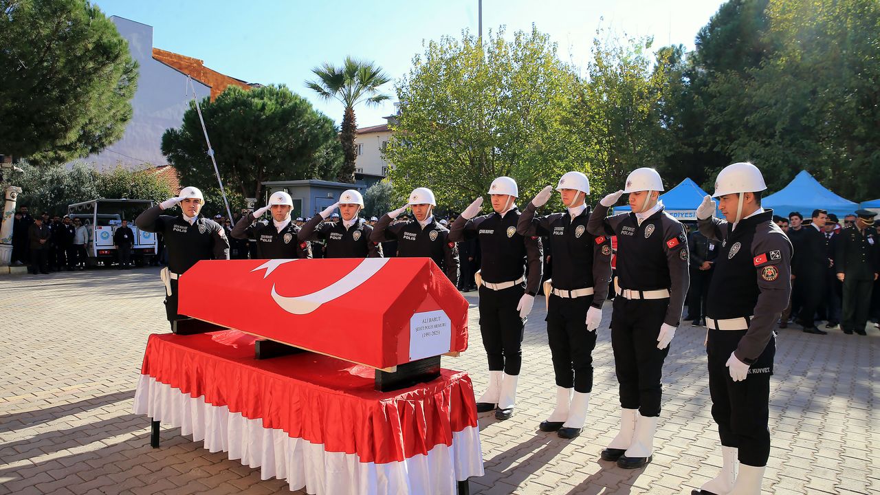 Alaşehir ilçesinde trafik polislerinin bulunduğu ekip aracının tıra çarpması sonucu şehit olan polis memuru Ali Barut için Alaşehir İlçe Emniyet Müdürlüğü'nde tören düzenlendi.