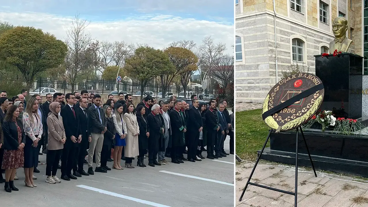 Uşak Barosu, Mustafa Kemal Atatürk'ün 87. ölüm yıldönümü sebebiyle Adliye Sarayı önündeki büste çelenk bıraktı ve mesaj yayımladı: