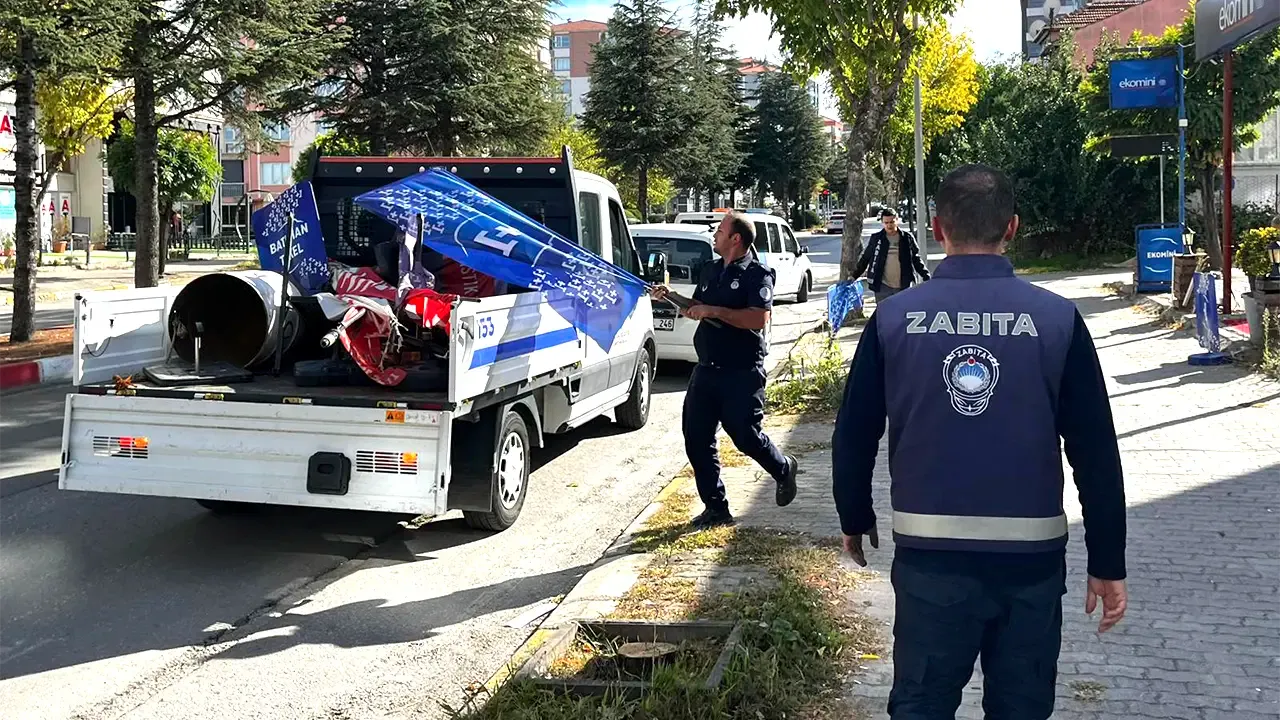 Kaldırımlara ve yol kenarlarına bırakılan tabela, duba, yelken bayrak, flama ve varil gibi eşyalar zabıta ekipleri tarafından toplanarak yayaların kullanımına açıldı.