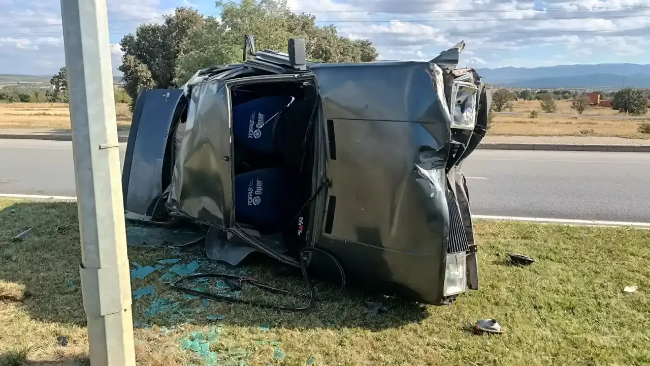 Uşak’ta meydana gelen trafik kazasında bir otomobil takla attı, sürücü kazayı yara almadan atlattı.